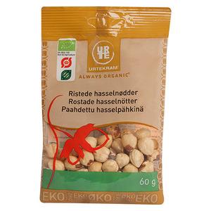 Urtekram Hasselnødder ristede Ø – lækre, sprøde, ristede hasselnødder Disse økologiske hasselnødder fra Urtekram er ristet ved let varme, for at opnå den sprøde smag af nougat. Hasselnødder er især gode i retter fordi de har et højt indhold af kostfibre, (Læs mere)